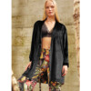 Kimono reversible con un estampado floral vibrante por un lado y un elegante negro por el otro, puedes elegir el estilo que más te guste según la ocasión. Confeccionado en tejido de elastano, ofrece comodidad y flexibilidad, adaptándose perfectamente a tu figura. Es un must-have para quienes buscan versatilidad y estilo.
