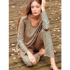 Camisa pijama botones delanteros con estampado en motivos geométricos abstractos en tonos como el negro y beige, con pinceladas de azul eléctrico y tonos dorados en tejido viscosa tacto sedoso.