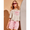 Pijama tirantes estampado Snoopy, confeccionado 100% algodón. Camiseta con estampado central de tirantes tipo evasé y short a contraste con micromotivos Snoopy, cintura rizada y lazada delantera.