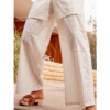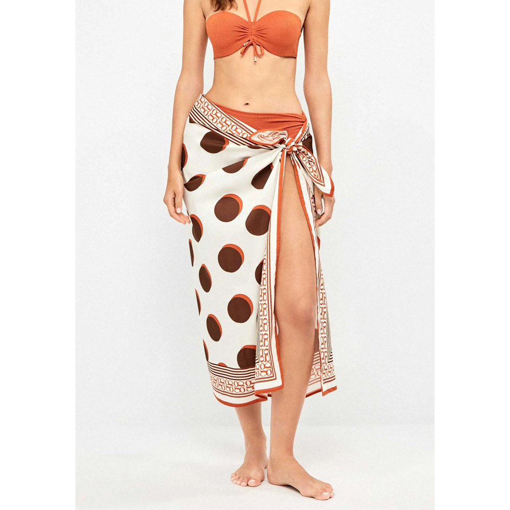 Pareo 100% algodón, estampado en lunares, rayas y logo Gisela sobre fondo blanco.