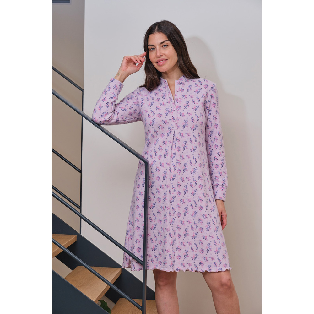 Camisón de punto milano con tapeta abierta con cierre de botones.