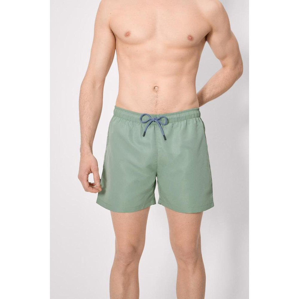 Bañador de corte medio para hombre. Tejido ligero y de secado rápido. Bolsillos laterales y posterior con evacuador de agua. Cordón de ajuste en la cintura.